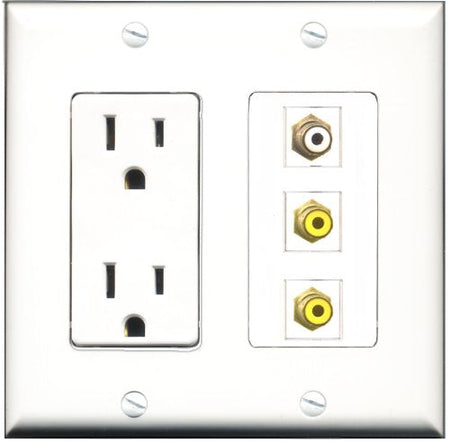 RiteAV - 15 Amp Power Outlet 1 Port RCA White 2 Port RCA Yellow Decorative Wall Plate