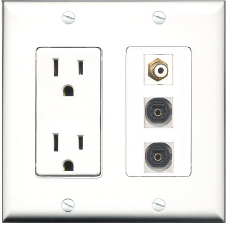 RiteAV - 15 Amp Power Outlet 1 Port RCA White 2 Port Toslink Decorative Wall Plate