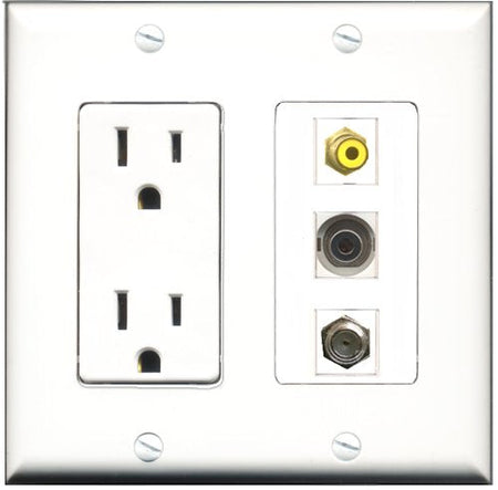 RiteAV - 15 Amp Power Outlet 1 Port RCA Yellow 1 Port Coax 1 Port 3.5mm Decorative Wall Plate