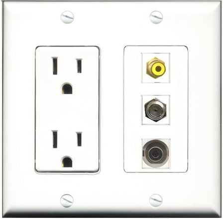 RiteAV - 15 Amp Power Outlet 1 Port RCA Yellow 1 Port Coax 1 Port 3.5mm Decorative Wall Plate