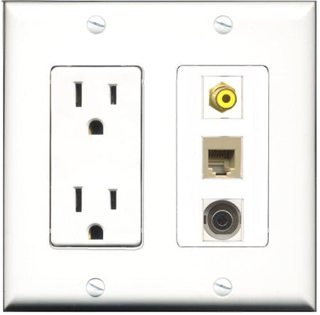 RiteAV - 15 Amp Power Outlet 1 Port RCA Yellow 1 Port Phone Beige 1 Port 3.5mm Decorative Wall Plate