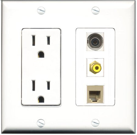 RiteAV - 15 Amp Power Outlet 1 Port RCA Yellow 1 Port Phone Beige 1 Port 3.5mm Decorative Wall Plate