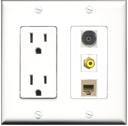 RiteAV - 15 Amp Power Outlet 1 Port RCA Yellow 1 Port Phone Beige 1 Port Toslink Decorative Wall Plate