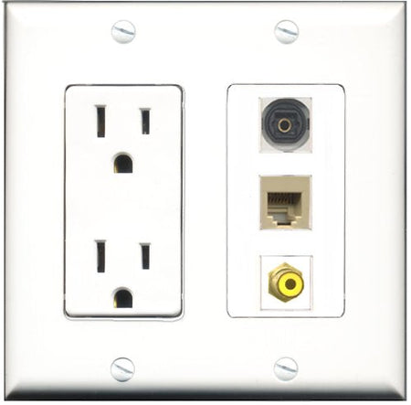 RiteAV - 15 Amp Power Outlet 1 Port RCA Yellow 1 Port Phone Beige 1 Port Toslink Decorative Wall Plate