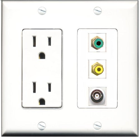 RiteAV - 15 Amp Power Outlet 1 Port RCA Yellow 1 Port RCA Green 1 Port BNC Decorative Wall Plate