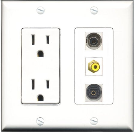RiteAV - 15 Amp Power Outlet 1 Port RCA Yellow 1 Port Toslink 1 Port 3.5mm Decorative Wall Plate