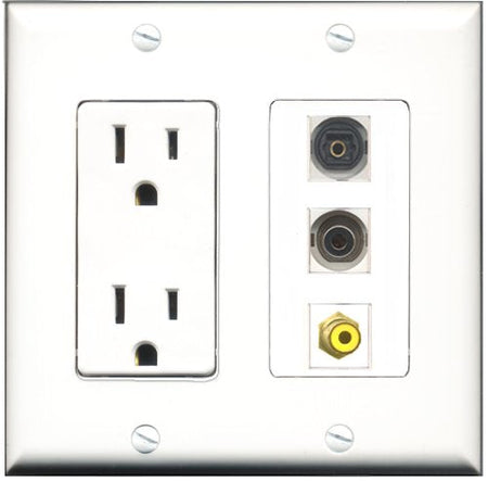 RiteAV - 15 Amp Power Outlet 1 Port RCA Yellow 1 Port Toslink 1 Port 3.5mm Decorative Wall Plate