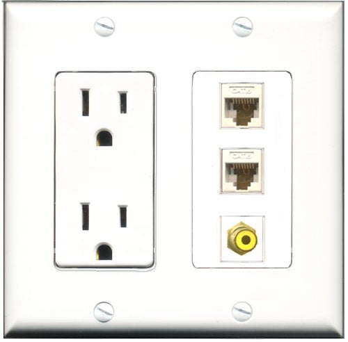 RiteAV - 15 Amp Power Outlet 1 Port RCA Yellow 2 Port Cat6 Ethernet Ethernet White Decorative Wall Plate