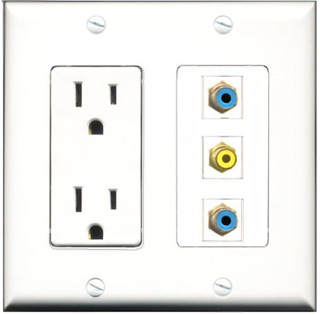RiteAV - 15 Amp Power Outlet 1 Port RCA Yellow 2 Port RCA Blue Decorative Wall Plate