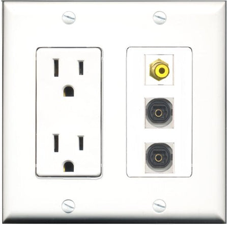 RiteAV - 15 Amp Power Outlet 1 Port RCA Yellow 2 Port Toslink Decorative Wall Plate