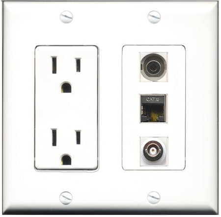 RiteAV - 15 Amp Power Outlet 1 Port Shielded Cat6 Ethernet Ethernet 1 Port 3.5mm 1 Port BNC Decorative Wall Plate