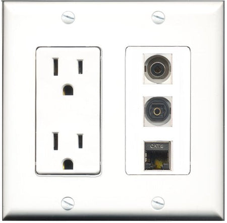 RiteAV - 15 Amp Power Outlet 1 Port Shielded Cat6 Ethernet Ethernet 1 Port Toslink 1 Port 3.5mm Decorative Wall Plate