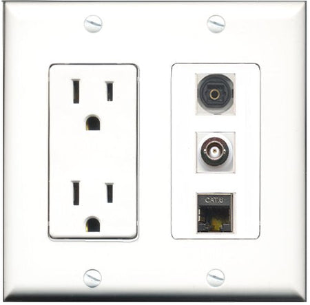 RiteAV - 15 Amp Power Outlet 1 Port Shielded Cat6 Ethernet Ethernet 1 Port Toslink 1 Port BNC Decorative Wall Plate