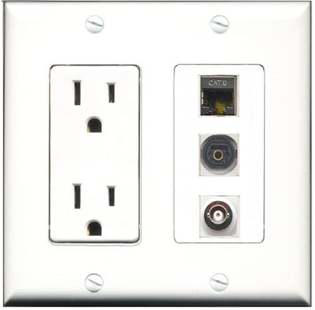 RiteAV - 15 Amp Power Outlet 1 Port Shielded Cat6 Ethernet Ethernet 1 Port Toslink 1 Port BNC Decorative Wall Plate