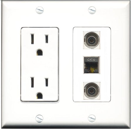 RiteAV - 15 Amp Power Outlet 1 Port Shielded Cat6 Ethernet Ethernet 2 Port 3.5mm Decorative Wall Plate