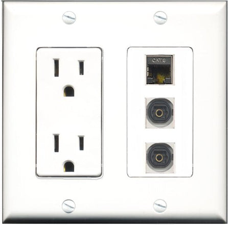 RiteAV - 15 Amp Power Outlet 1 Port Shielded Cat6 Ethernet Ethernet 2 Port Toslink Decorative Wall Plate
