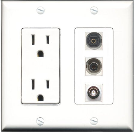 RiteAV - 15 Amp Power Outlet 1 Port Toslink 1 Port 3.5mm 1 Port BNC Decorative Wall Plate