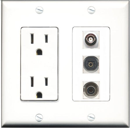 RiteAV - 15 Amp Power Outlet 1 Port Toslink 1 Port 3.5mm 1 Port BNC Decorative Wall Plate