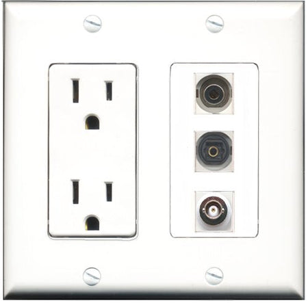 RiteAV - 15 Amp Power Outlet 1 Port Toslink 1 Port 3.5mm 1 Port BNC Decorative Wall Plate