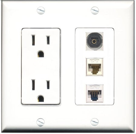RiteAV - 15 Amp Power Outlet 1 Port Toslink 1 Port Cat5e Ethernet White 1 Port Cat6 Ethernet Ethernet White Decorative Wall Plate