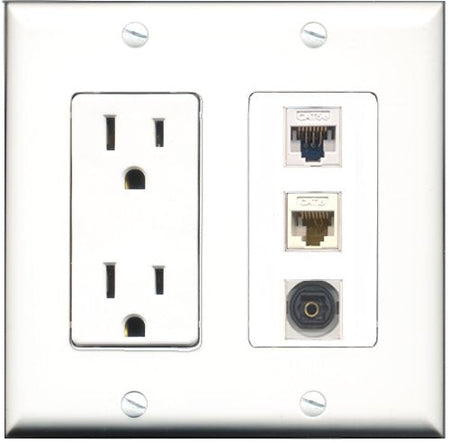 RiteAV - 15 Amp Power Outlet 1 Port Toslink 1 Port Cat5e Ethernet White 1 Port Cat6 Ethernet Ethernet White Decorative Wall Plate