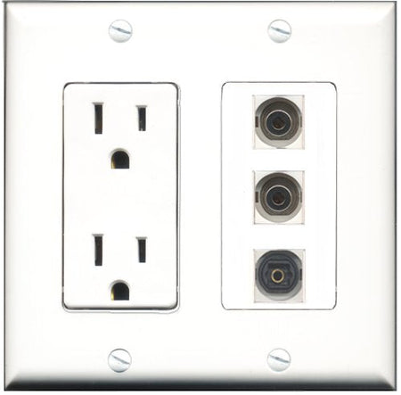 RiteAV - 15 Amp Power Outlet 1 Port Toslink 2 Port 3.5mm Decorative Wall Plate