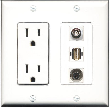 RiteAV - 15 Amp Power Outlet 1 Port USB A-A 1 Port 3.5mm 1 Port BNC Decorative Wall Plate
