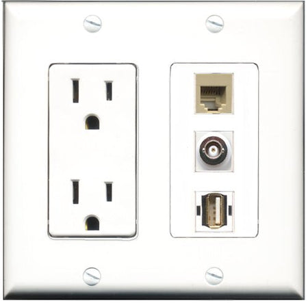 RiteAV - 15 Amp Power Outlet 1 Port USB A-A 1 Port Phone Beige 1 Port BNC Decorative Wall Plate
