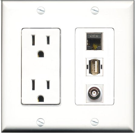 RiteAV - 15 Amp Power Outlet 1 Port USB A-A 1 Port Shielded Cat6 Ethernet Ethernet 1 Port BNC Decorative Wall Plate