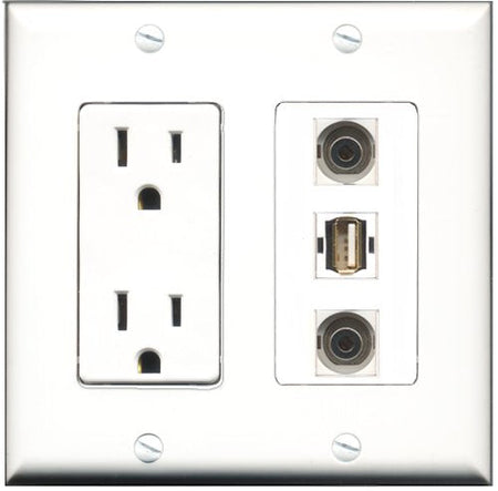RiteAV - 15 Amp Power Outlet 1 Port USB A-A 2 Port 3.5mm Decorative Wall Plate