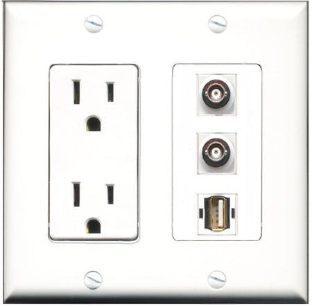 RiteAV - 15 Amp Power Outlet 1 Port USB A-A 2 Port BNC Decorative Wall Plate