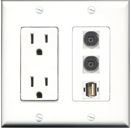 RiteAV - 15 Amp Power Outlet 1 Port USB A-A 2 Port Toslink Decorative Wall Plate