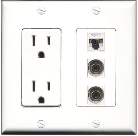 RiteAV - 15 Amp Power Outlet 2 Port 3.5mm 1 Port Cat5e Ethernet White Decorative Wall Plate