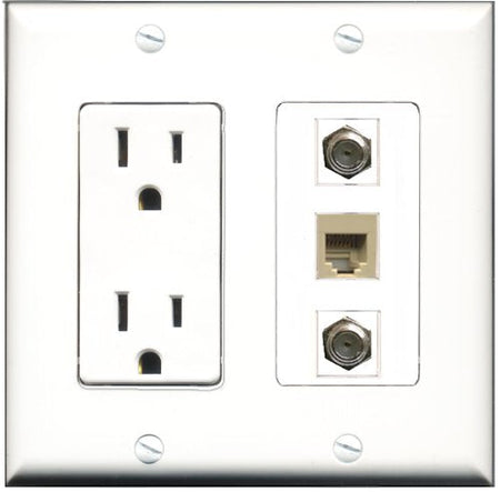 RiteAV - 15 Amp Power Outlet 2 Port Coax 1 Port Phone Beige Decorative Wall Plate