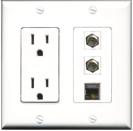 RiteAV - 15 Amp Power Outlet 2 Port Coax 1 Port Shielded Cat6 Ethernet Ethernet Decorative Wall Plate