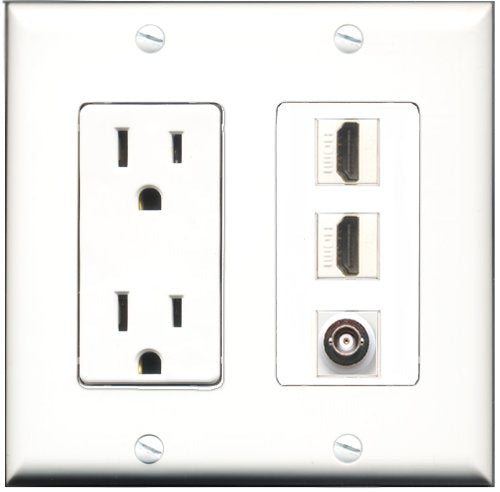 RiteAV - 15 Amp Power Outlet 2 Port HDMI 1 Port BNC Decorative Wall Plate