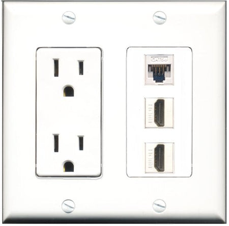 RiteAV - 15 Amp Power Outlet 2 Port HDMI 1 Port Cat5e Ethernet White Decorative Wall Plate