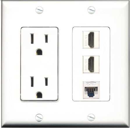 RiteAV - 15 Amp Power Outlet 2 Port HDMI 1 Port Cat5e Ethernet White Decorative Wall Plate
