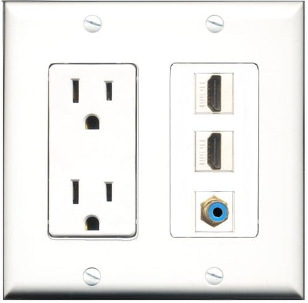 RiteAV - 15 Amp Power Outlet 2 Port HDMI 1 Port RCA Blue Decorative Wall Plate