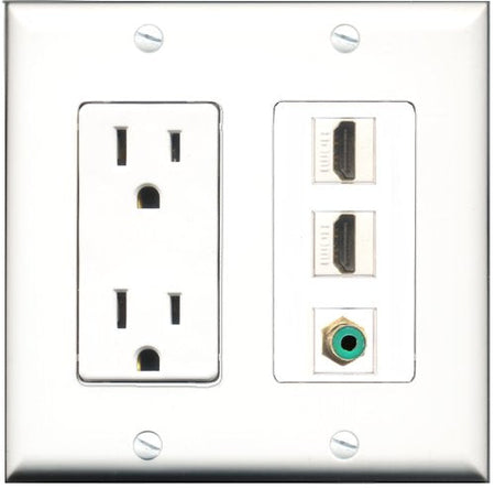 RiteAV - 15 Amp Power Outlet 2 Port HDMI 1 Port RCA Green Decorative Wall Plate