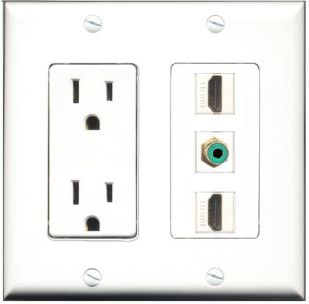 RiteAV - 15 Amp Power Outlet 2 Port HDMI 1 Port RCA Green Decorative Wall Plate