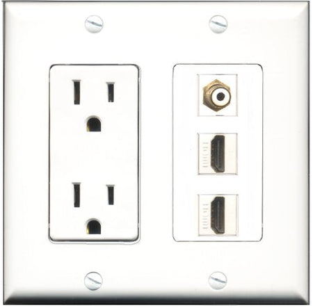 RiteAV - 15 Amp Power Outlet 2 Port HDMI 1 Port RCA White Decorative Wall Plate