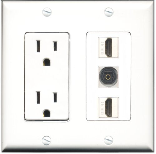 RiteAV - 15 Amp Power Outlet 2 Port HDMI 1 Port Toslink Decorative Wall Plate