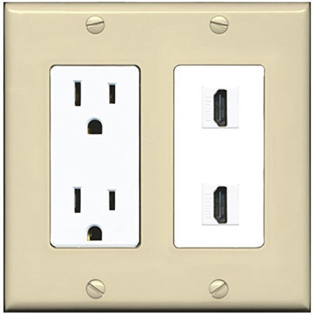 RiteAV - 15 Amp Power Outlet 2 Port HDMI Decorative Wall Plate - Ivory/White