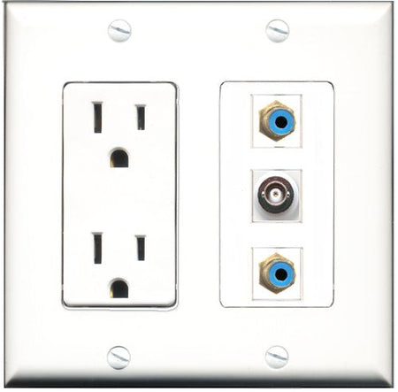 RiteAV - 15 Amp Power Outlet 2 Port RCA Blue 1 Port BNC Decorative Wall Plate
