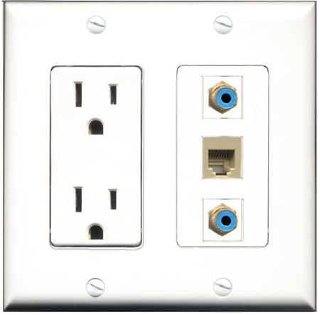 RiteAV - 15 Amp Power Outlet 2 Port RCA Blue 1 Port Phone Beige Decorative Wall Plate