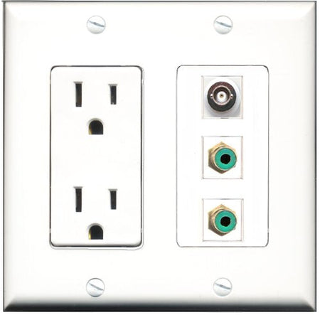RiteAV - 15 Amp Power Outlet 2 Port RCA Green 1 Port BNC Decorative Wall Plate