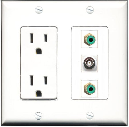 RiteAV - 15 Amp Power Outlet 2 Port RCA Green 1 Port BNC Decorative Wall Plate