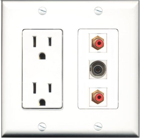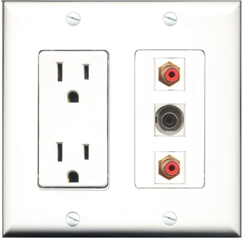 RiteAV - 15 Amp Power Outlet 2 Port RCA Red 1 Port 3.5mm Decorative Wall Plate