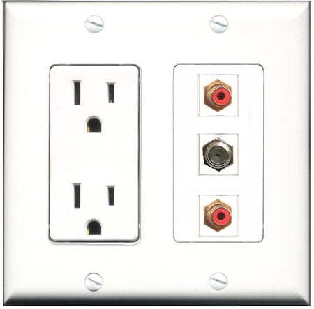 RiteAV - 15 Amp Power Outlet 2 Port RCA Red 1 Port Coax Decorative Wall Plate